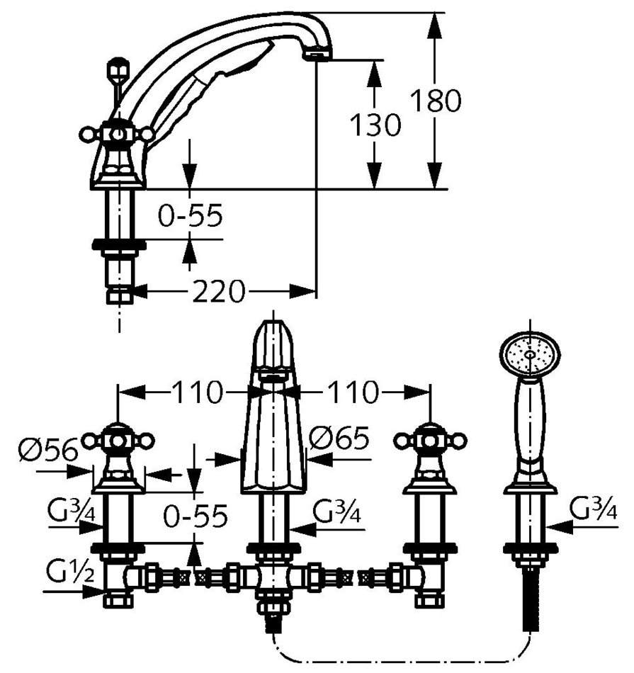 - Смеситель для ванны и душа DN 15