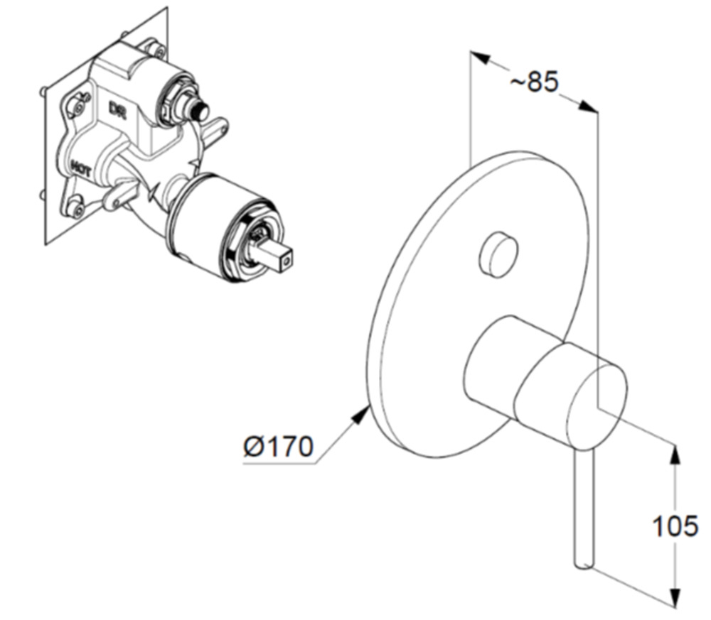 Внешняя монтажная часть, внутренняя (скрытая) часть смесителя приобретается отдельно.