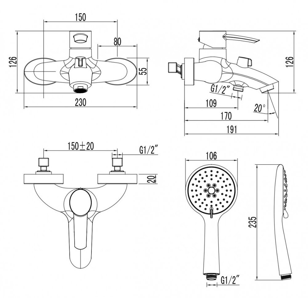 Смеситель Lemark Atlantiss для ванны, с душевым гарнитуром, хром, LM3254C