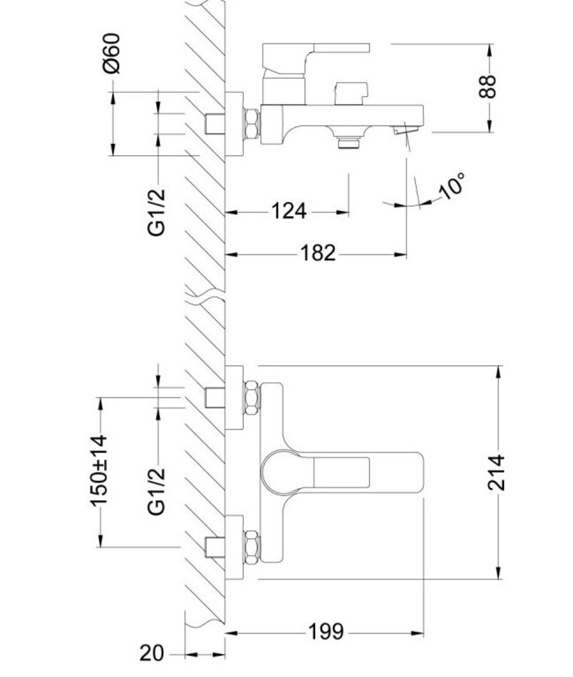 Смеситель Lemark Aura LM0614C для ванны и душа, излив монолит