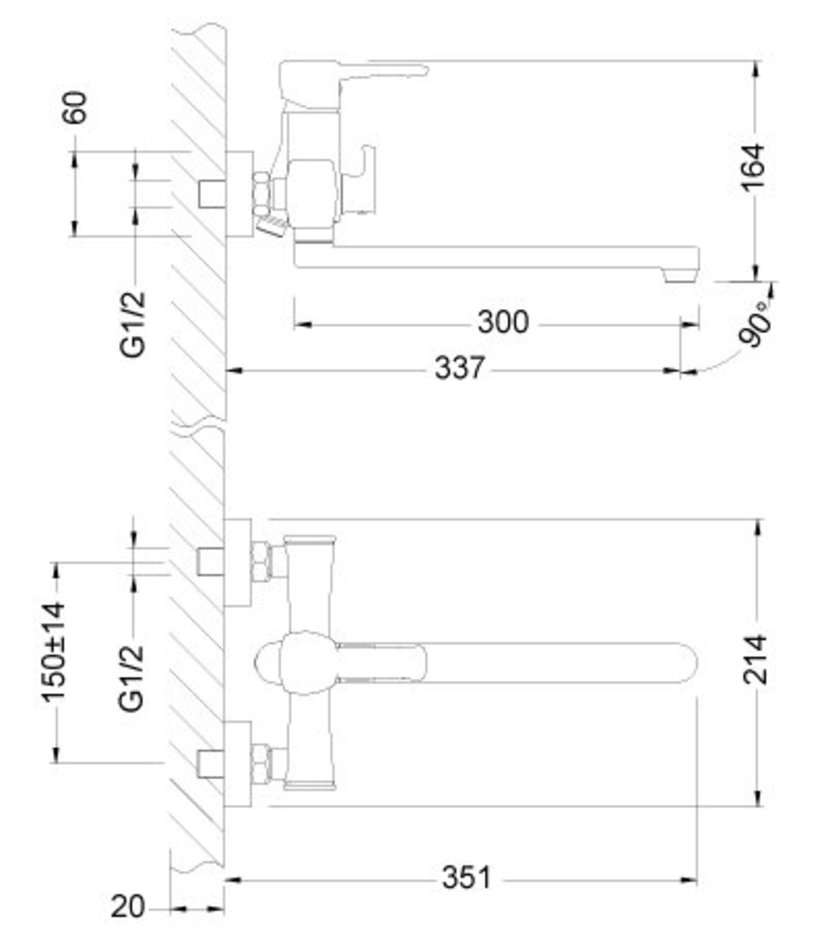 - Смеситель для ванны и душа, для раковины