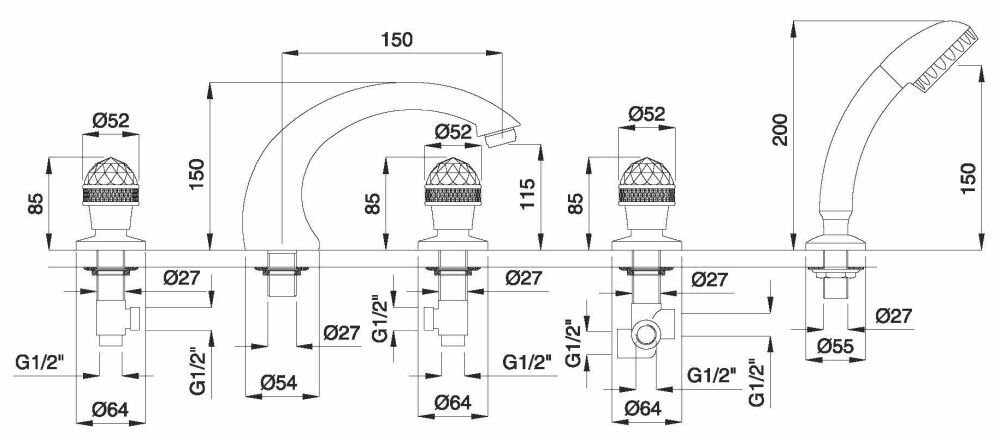 Смеситель Migliore Axo Swarovski 18506 для ванны/душа - золото