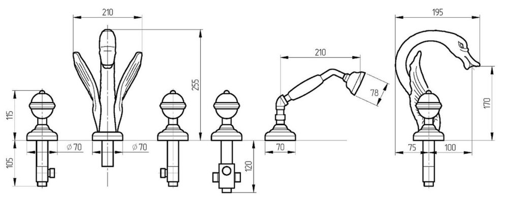 Смеситель Migliore.CRistalia Swan 24243 для ванны, золото