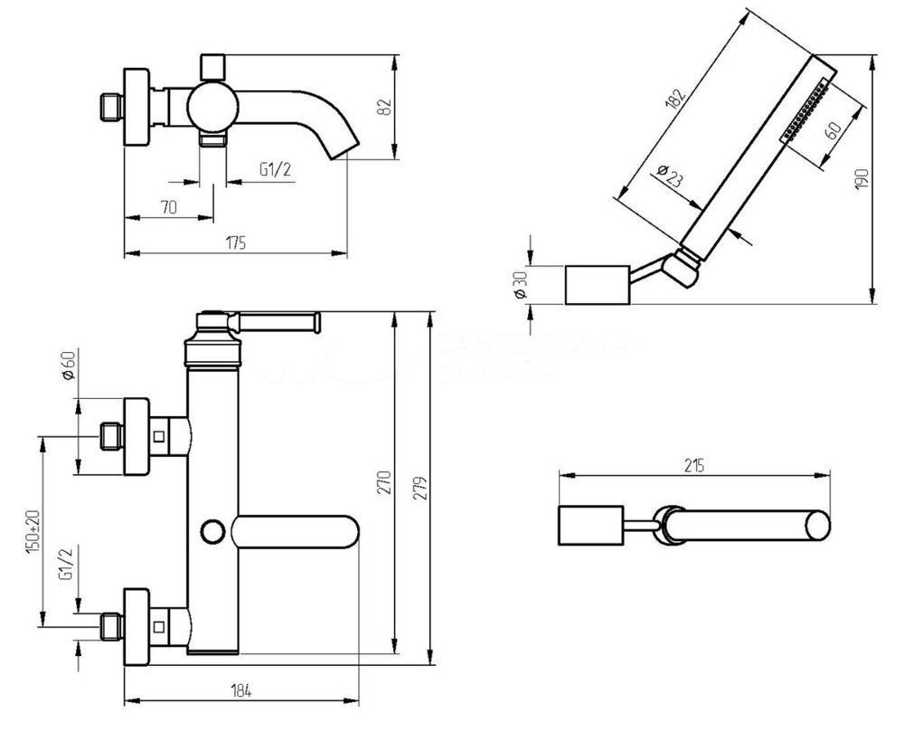Смеситель Migliore Ermitage Mini для ванны, с душевым гарнитуром, хром, 30178