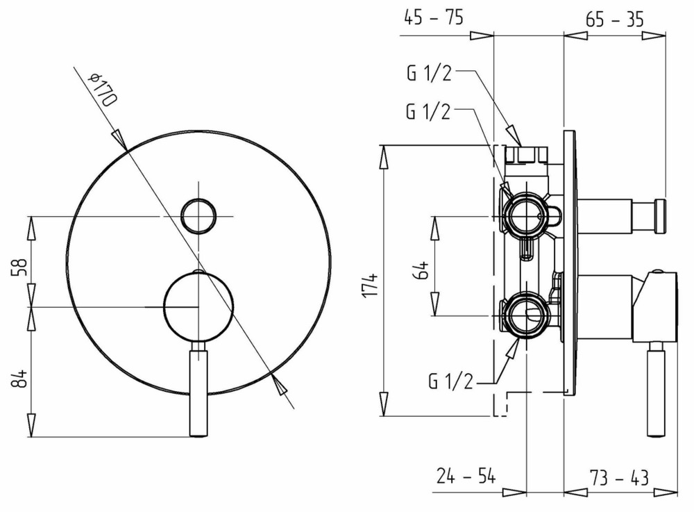 - Количество монтажных отверстий: 1