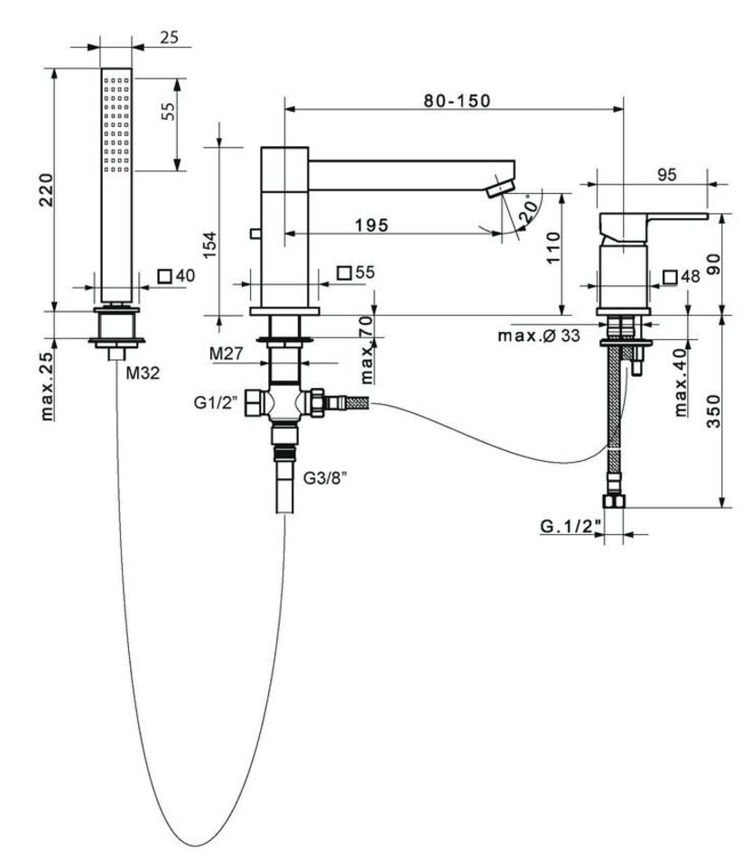 Смеситель Migliore Kvant ML.KVT-2755 для ванны/душа, хром
