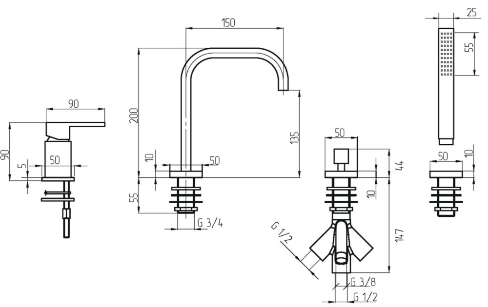 Смеситель Migliore Kvant ML.KVT-2756 для ванны и душа, на 4 отверстия