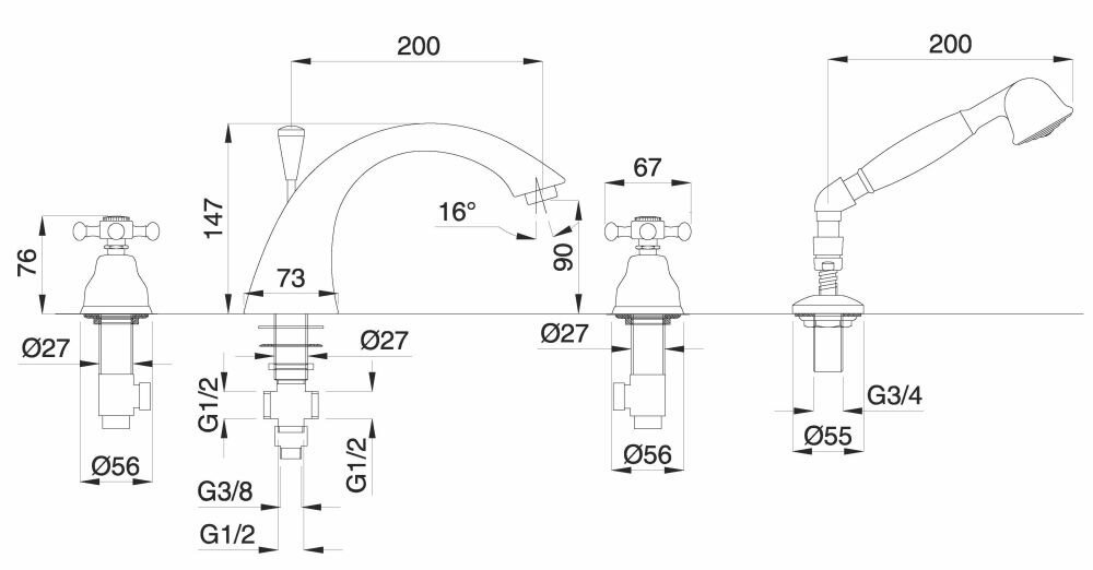 Смеситель Migliore Lady 18812 для ванны/душа - бронза