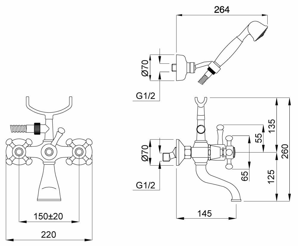 Смеситель Migliore Lady 18848 для ванны/душа - золото