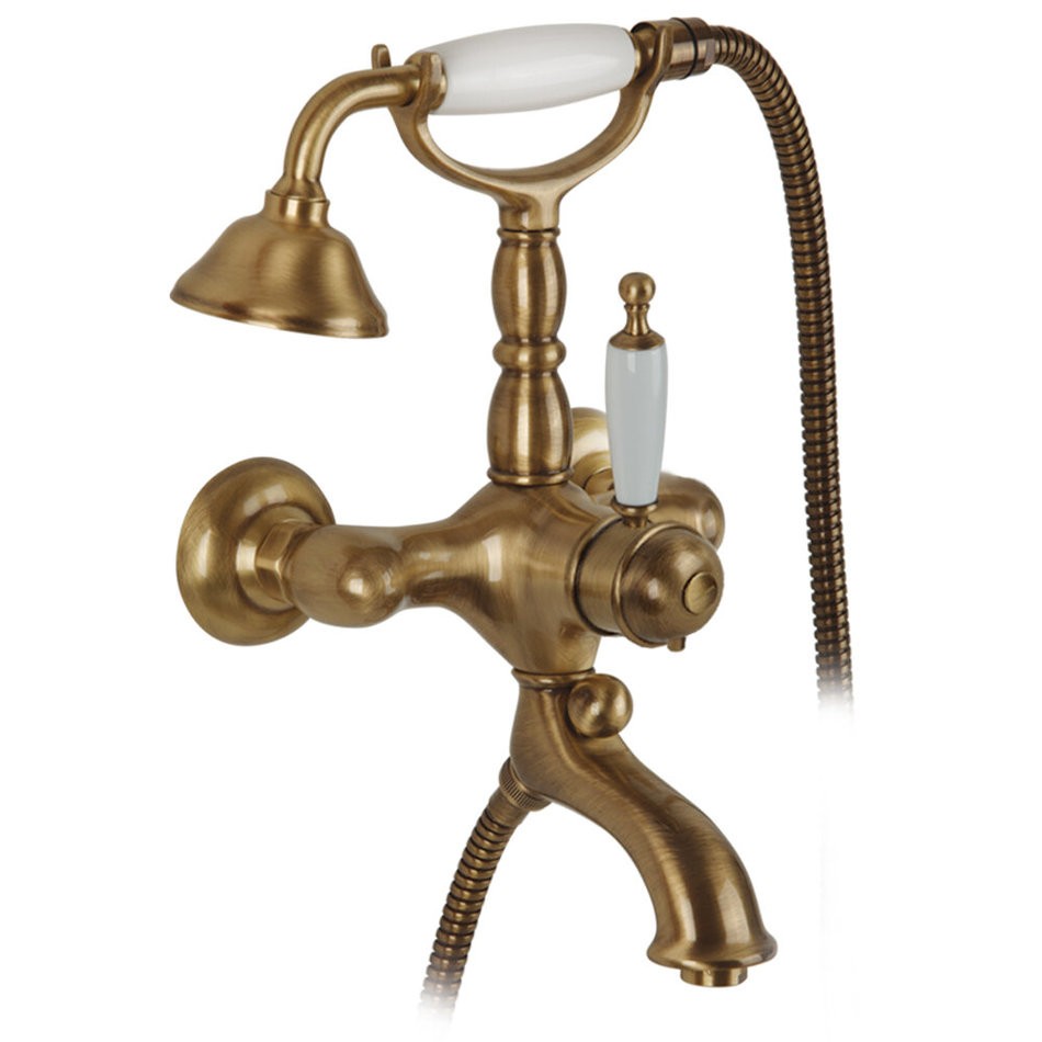 - С душевым комплектом и держателем на стену