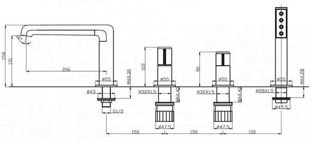 Смеситель на борт ванны BelBagno Uno UNO-BVD4-CRM, хром