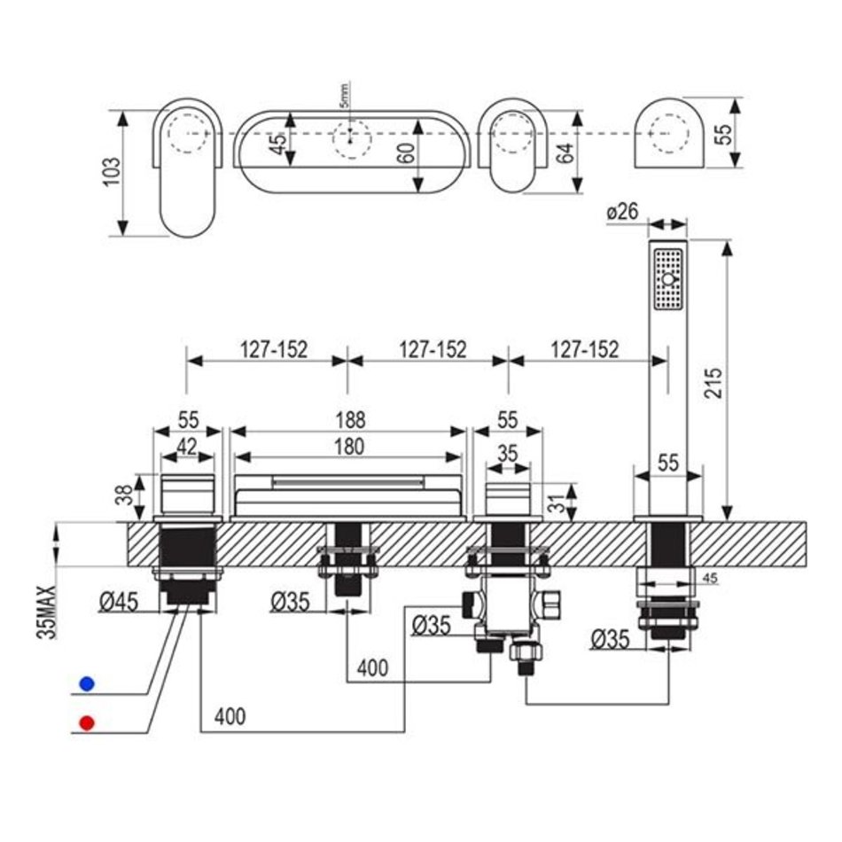 - исполнение: устанавливается на ванну с широким и горизонтальным бором