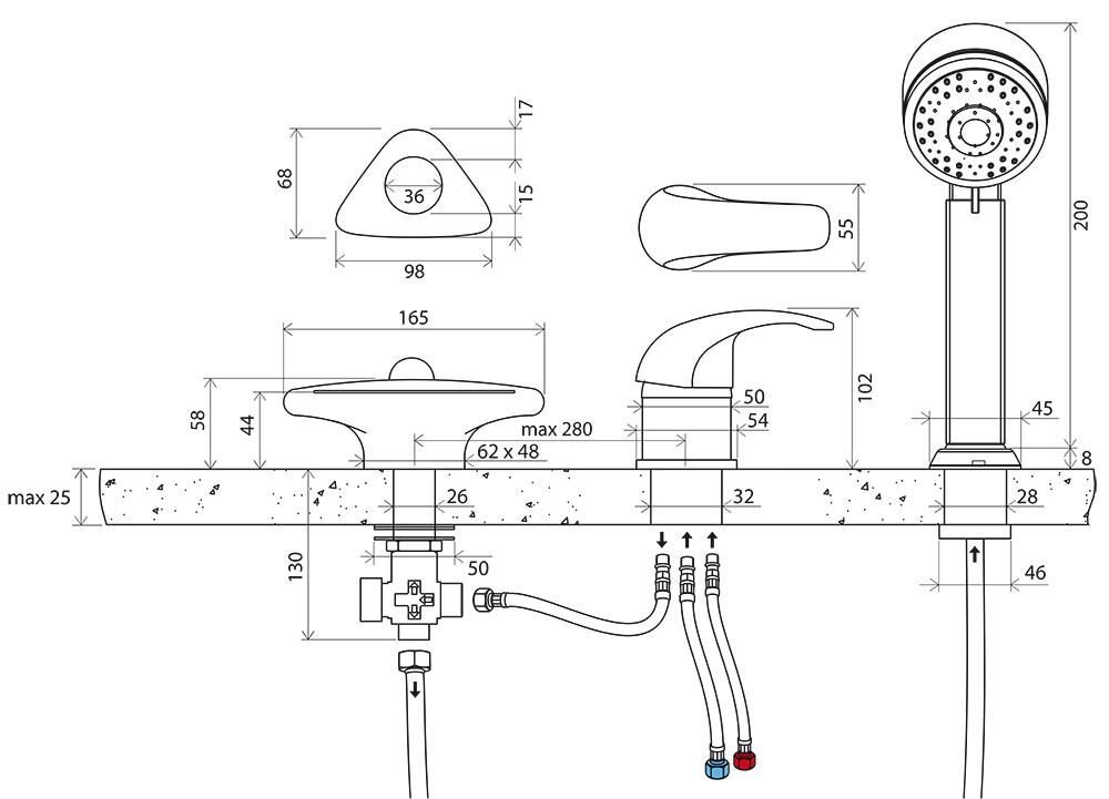 Смеситель на борт ванны Ravak Rosa X07P003 RS 025.00, хром