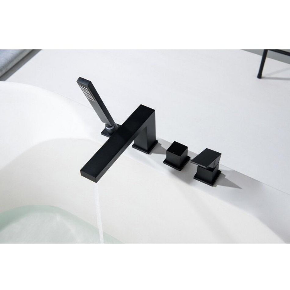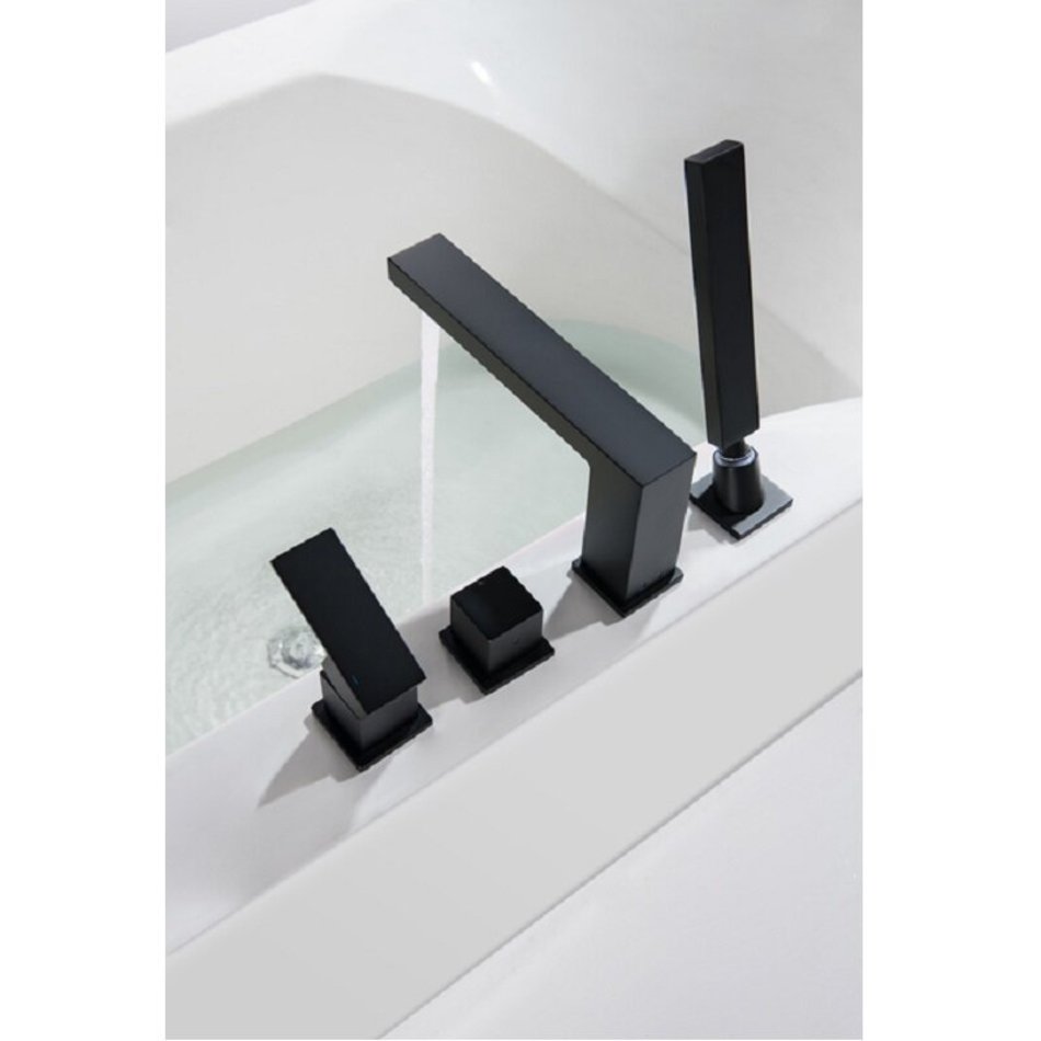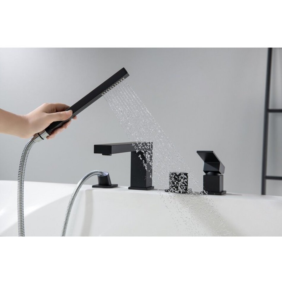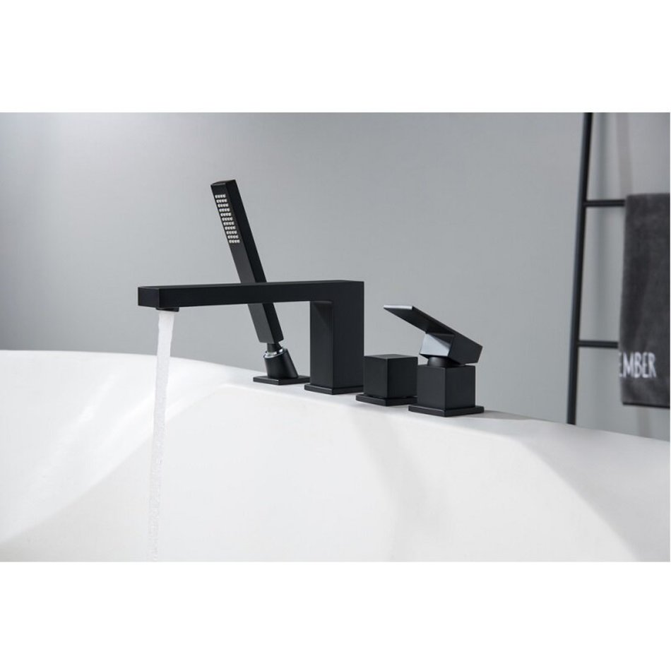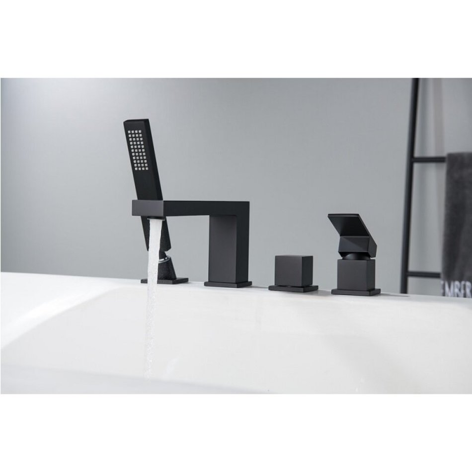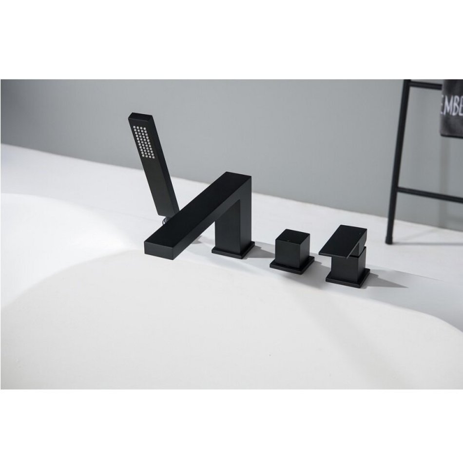 Смеситель на борт ванны (чёрный матовый). Смеситель предназначен для установки на борт ванны. Врезной смеситель придаст ванной комнате оригинальности, благодаря тому, что шланг ручной лейки и все соединения скрыты. Использовать такой смеситель очень удобно, регулировка температуры и напора воды осуществляется одним рычагом, переключение режимов потока воды осуществляется плавным поворотом керамического дивертора. Поскольку часть конструкции является скрытой, рекомендуем позаботиться о том, чтобы к ней был доступ. Сложностей монтажа не возникает при установке смесителя опытным сантехником. Внимательно изучите инструкцию по монтажу и эксплуатации. Комплектация: Смеситель врезной - 1 шт.; Излив врезной (латунный) - 1 шт.; Блок управления режимами, врезной - 1 шт.; Держатель ручной лейки, врезной - 1 шт.; Ручная лейка, 3-х режимная (пластик) - 1 шт.; Шланг душа 1,5 м - 1 шт.; Инструкция - 1 шт.