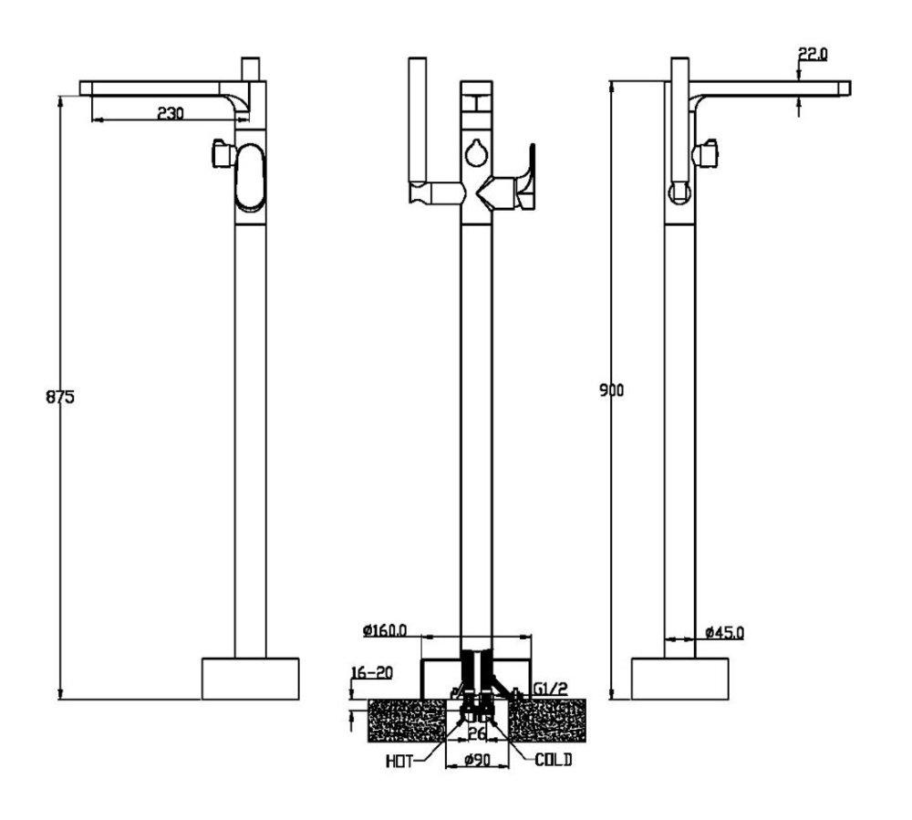 Смеситель напольный Boheme Spectre 459-BR для ванны, ручной душ, бронза