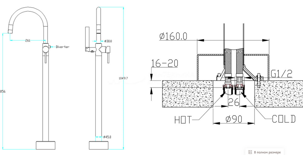 Смеситель напольный Boheme Uno с душевым гарнитуром, белый/золото, 469-WG