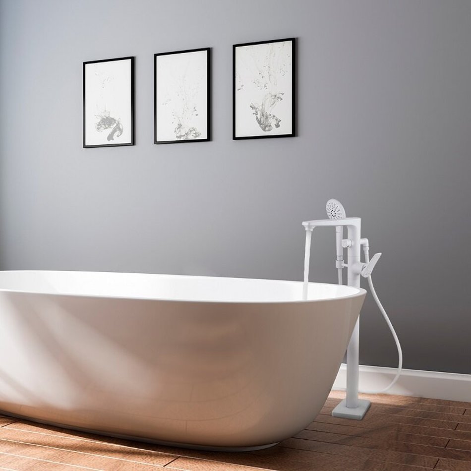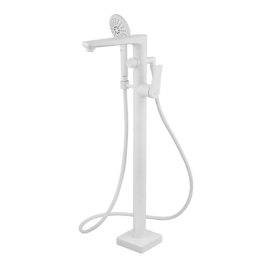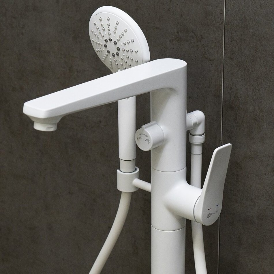 Смеситель напольный Lemark Bronx LM3744MW, для ванны, с душевым гарнитуром, белый матовый