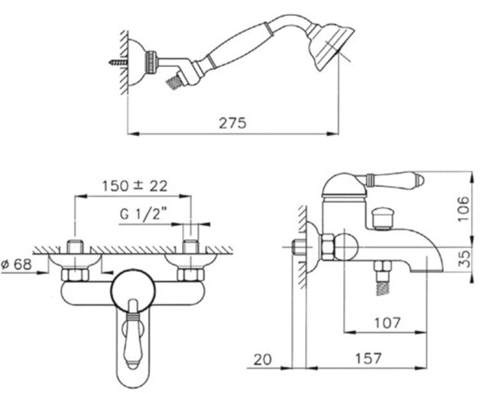 Смеситель Nicolazzi El Capitan 3401**75 для ванны с душем, ручка металл