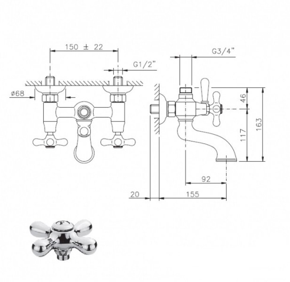 Смеситель Nicolazzi Nuova Brenta 2500BZ для душевой стойки, бронза