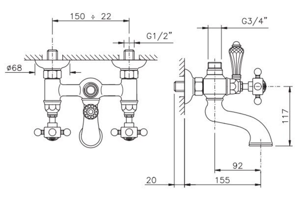 Смеситель Nicolazzi P.M.Blanc 1400CR78 для ванны и душа, под душевую стойку, ручка белая керамика, хром