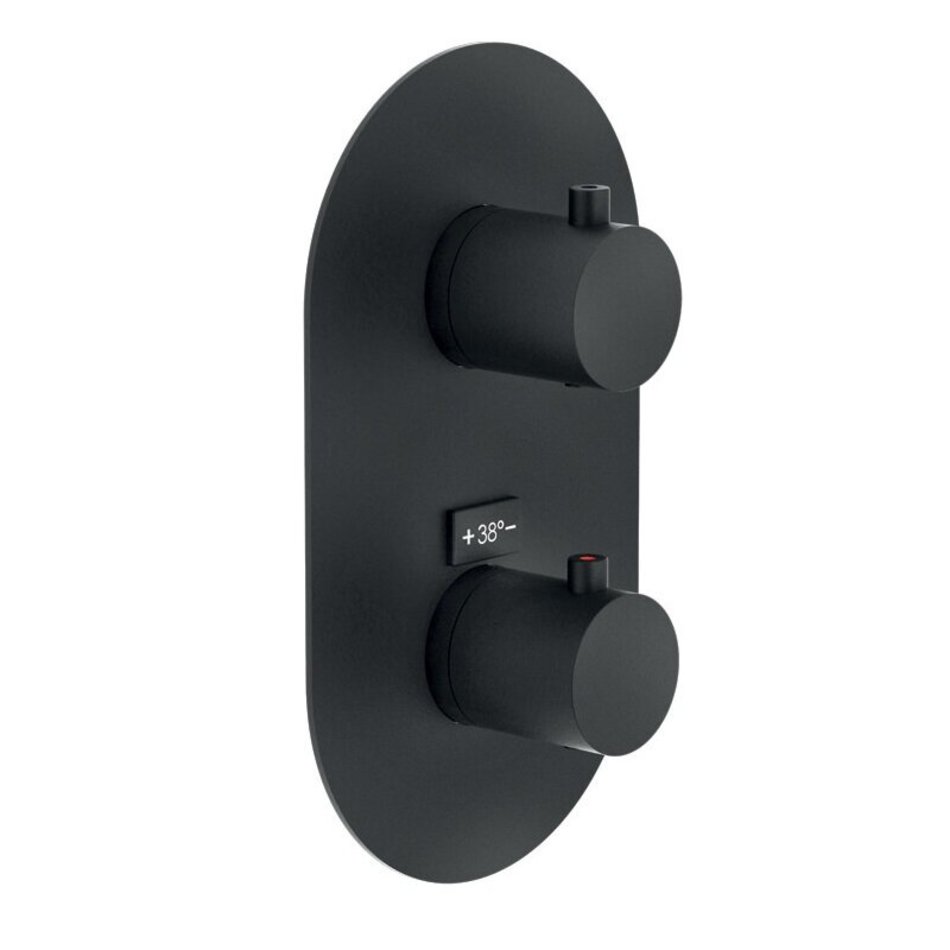 Термостат для ванны - внешняя часть (чёрный матовый). Защитное прерывание при температуре 38° C. Вертикальная или горизонтальная установка. Переключатель на два выхода. Для монтажа с внутренним механизмом WE00102.