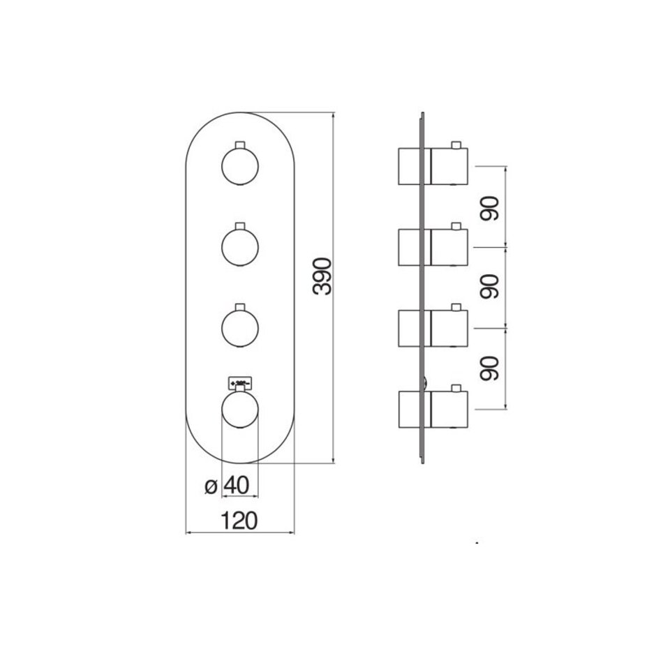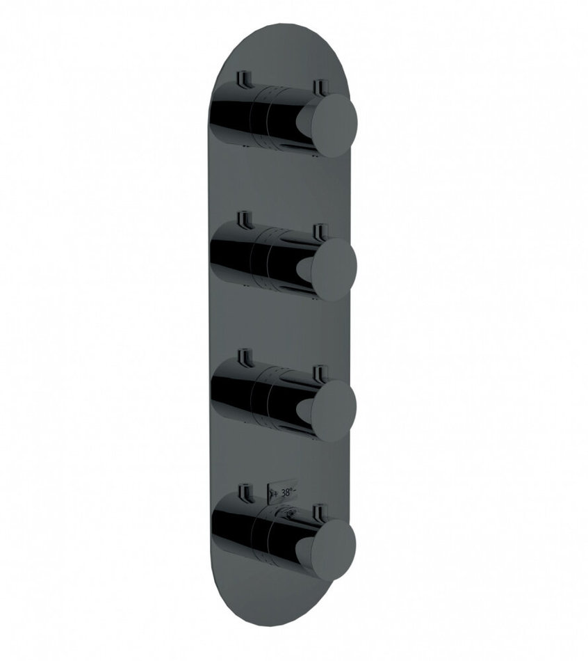Термостат для ванны - внешняя часть (чёрный глянцевый). Защитное прерывание при температуре 38° C. Вертикальная или горизонтальная установка. Переключатель на три выхода. Для монтажа с внутренним механизмом WE00103. Отделка Diamond smoke PVD.