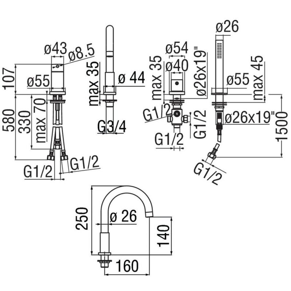 Смеситель Nobili Live WEBK110/9TBM на борт ванны, цвет черный матовый