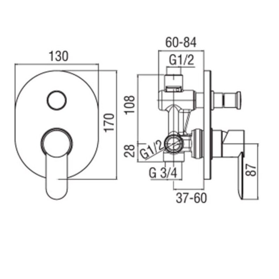 Смеситель Nobili Sand VE125130CR для ванны и душа, цвет хром