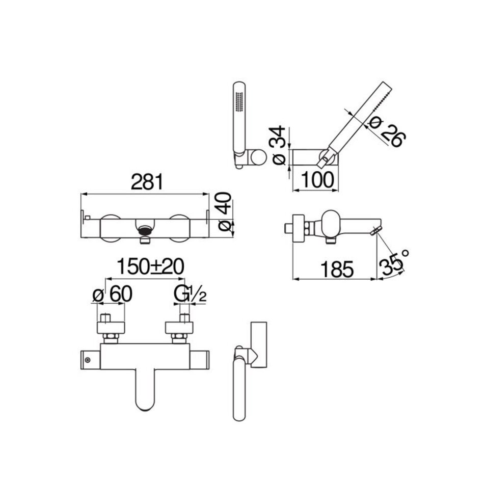 Смеситель Nobili Up для ванны и душа, термостатический, с душевым гарнитуром, цвет хром, UP94010CR