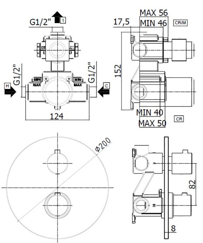 Смеситель Paffoni Light LIQ013CR для ванны и душа, термостатический, встраиваемый, с внутренней частью, хром