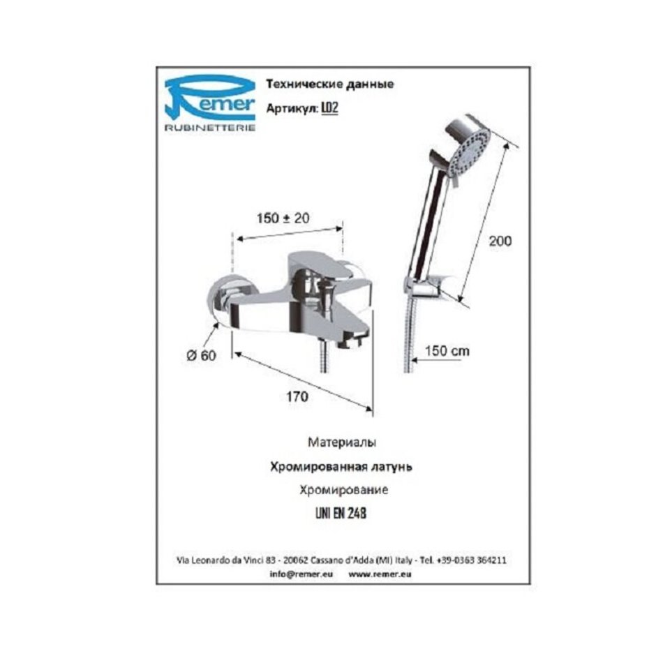 Смеситель Remer Class Line L02 для ванны и душа, цвет хром