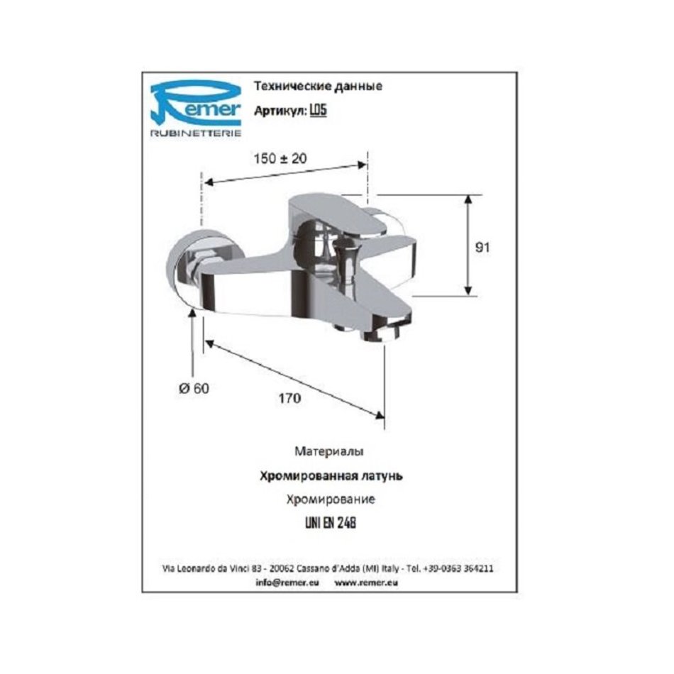 Смеситель Remer Class Line L05 для ванны и душа, цвет хром