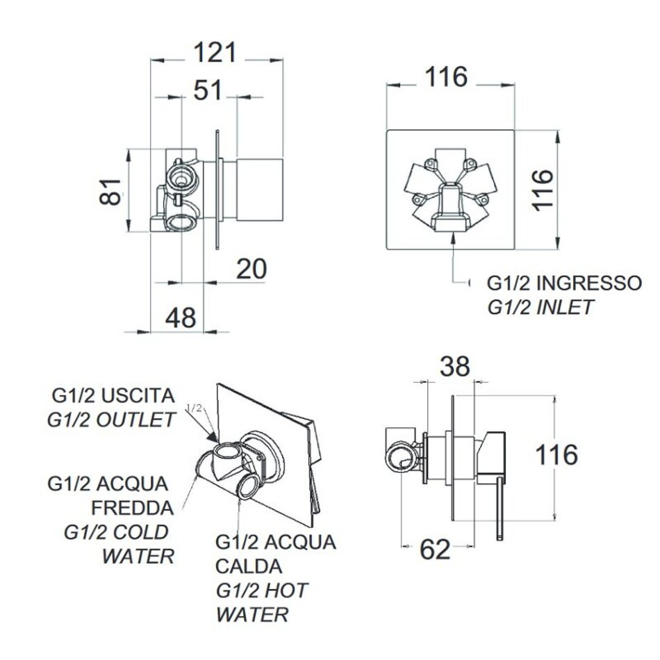 Смеситель Remer Qubika Q94C для ванны и душа, цвет хром