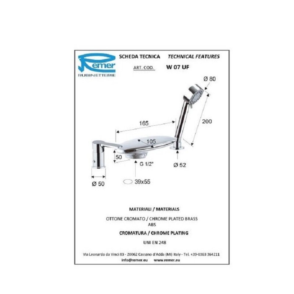 Смеситель Remer Winner W07UF для ванны, цвет хром