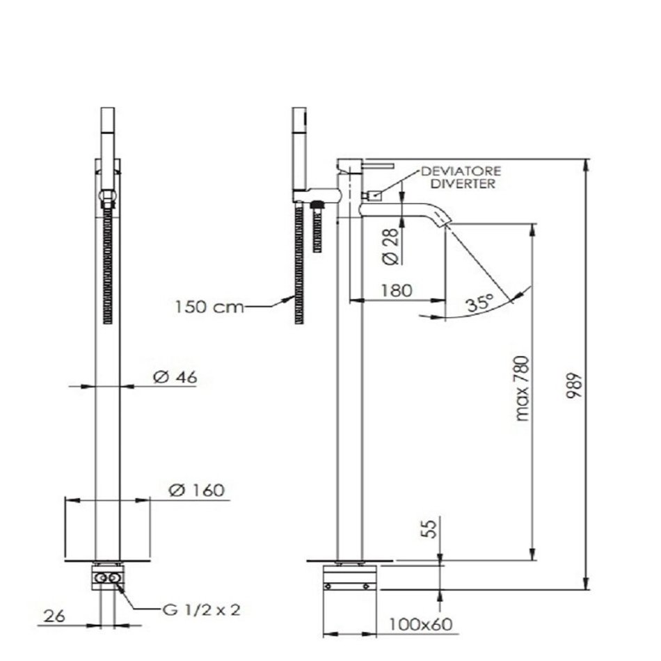 Смеситель Remer X Style Inox SSX08 для ванны и душа, напольный, цвет шлифованная нержавеющая сталь