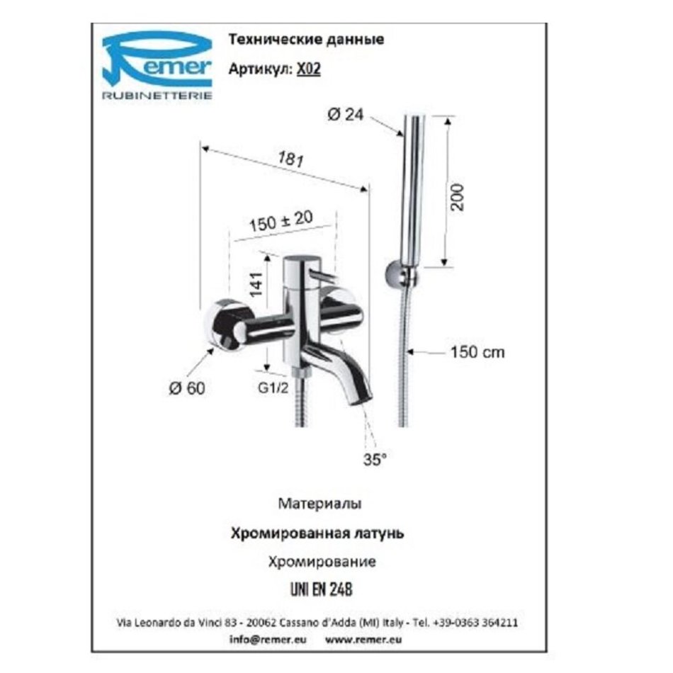 Смеситель Remer X Style X02 для ванны и душа, цвет хром