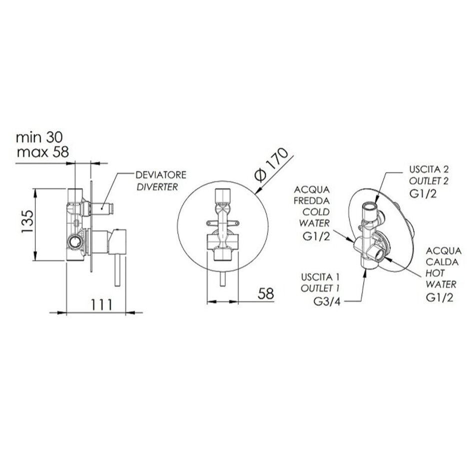 Смеситель для ванны и душа встраиваемый (хром). С двумя выходами 1/2" и 3/4". Полностью готовый к установке комплект. Дизайн этой серии разработан Кристианом Мапелли (Cristian Mapelli) и отделом научных разработок и развития компании Remer. Прекрасно подойдет для модернизации или ремонта практически любого помещения. В Серии X Style используются картриджи, выпускаемые STSR-технической лабораторией научно-исследовательских и конструкторских разработок. Корпус смесителя полностью изготовлен из латуни. Гарантия 5 лет. Сделано в Италии.