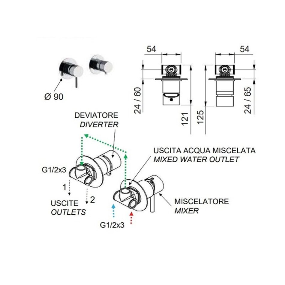 Смеситель для ванны и душа встраиваемый (хром). С тремя выходами 1/2". Полностью готовый к установке комплект. Дизайн этой серии разработан Кристианом Мапелли (Cristian Mapelli) и отделом научных разработок и развития компании Remer. Прекрасно подойдет для модернизации или ремонта практически любого помещения. В Серии X Style используются картриджи диаметром 25 мм, выпускаемые STSR-технической лабораторией научно-исследовательских и конструкторских разработок. Корпус смесителя полностью изготовлен из латуни. Гарантия 5 лет. Сделано в Италии.