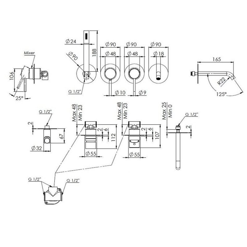 Смеситель для ванны встраиваемый (хром). С изливом, ручным душем, шлангом 150 см, настенным подключением шланга с держателем лейки, со смесителем на 2 потребителя. Полностью готовый к установке комплект. Дизайн этой серии разработан Кристианом Мапелли (Cristian Mapelli) и отделом научных разработок и развития компании Remer. Прекрасно подойдет для модернизации или ремонта практически любого помещения. В Серии X Style используются картриджи диаметром 25 мм, выпускаемые STSR-технической лабораторией научно-исследовательских и конструкторских разработок. Корпус смесителя полностью изготовлен из латуни. Гарантия 5 лет. Сделано в Италии.