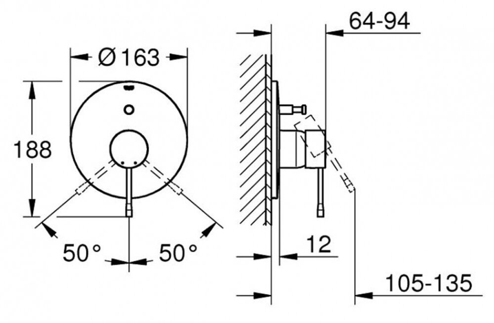 Смеситель скрытого монтажа (внешняя часть) Grohe Essence New 19285GL1 для ванны и душа, холодный рассвет глянец