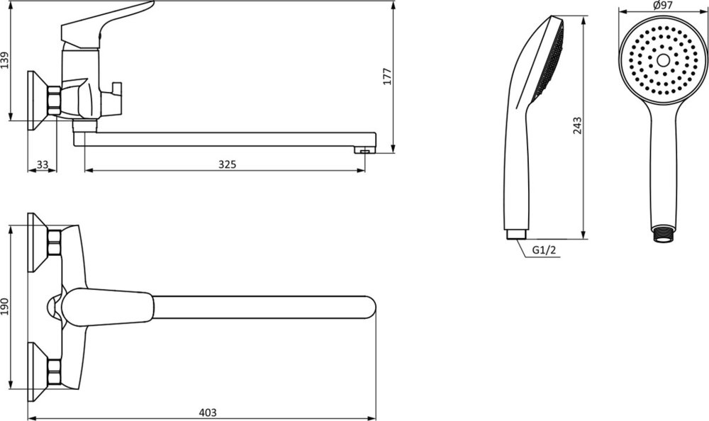 Блеск поверхности достигается за счет нанесения стойкого покрытия High Gloss. Рабочий механизм — фирменный керамический картридж Damixa с высокими показателями надежности. Для равномерной струи и экономии ресурса в излив встроен аэратор. В ручном душе предусмотрен один комфортный режим. Флажковый дивертор переводит поток с излива на душ и обратно, фиксируя выбранное положение