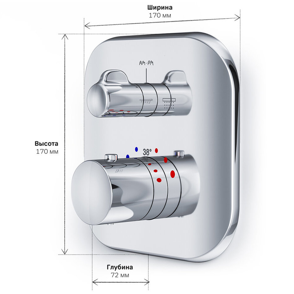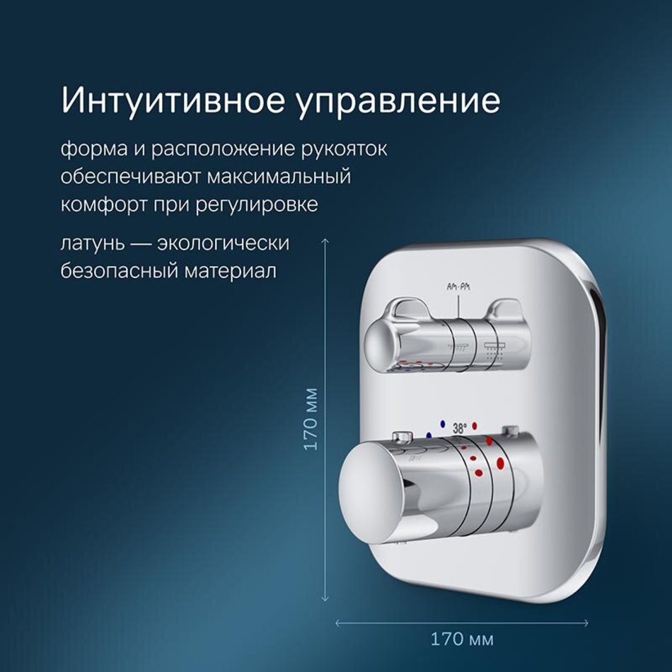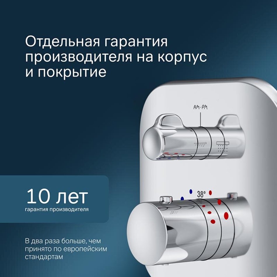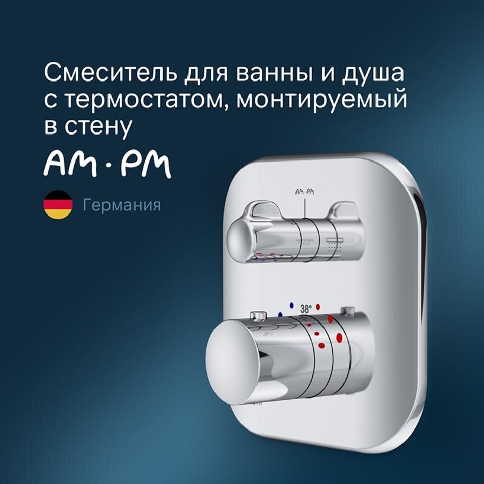 Смеситель термостатический Am.Pm Sensation F3085500 для ванны и душа, встраиваемый, внешняя часть
