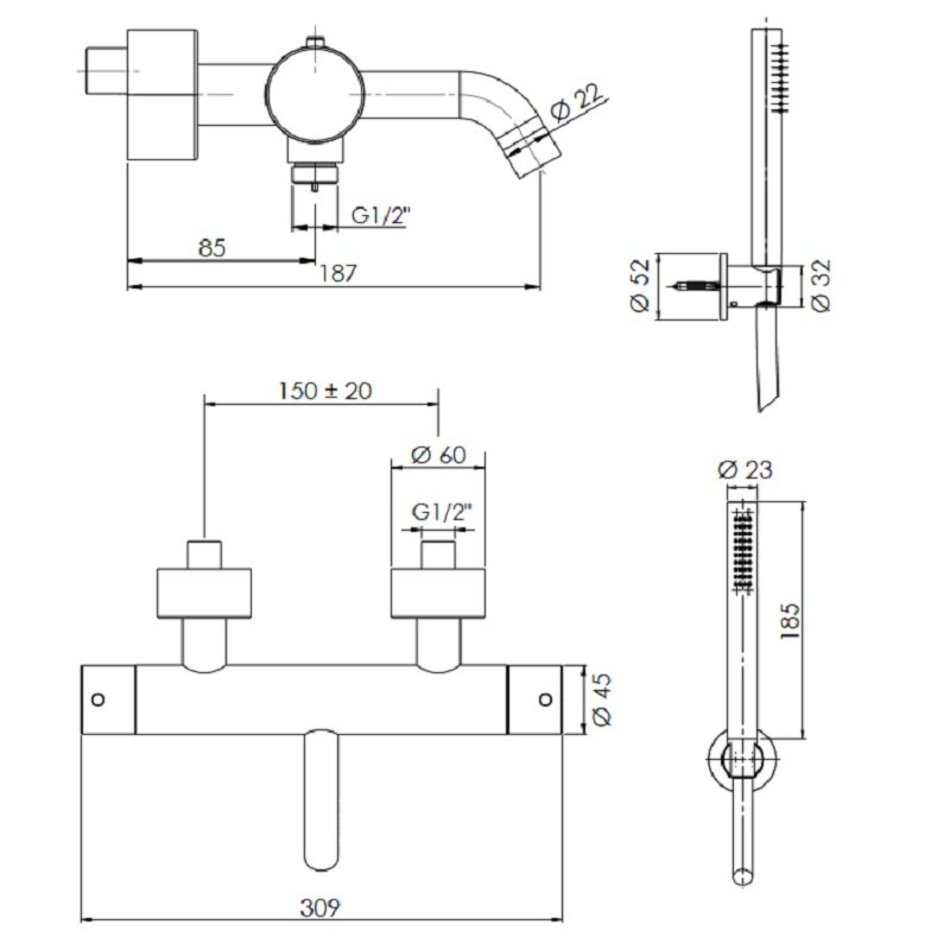 Смеситель термостатический Remer X Style Inox для ванны и душа, с душевым гарнитуром, цвет шлифованная нержавеющая сталь, SSXT02