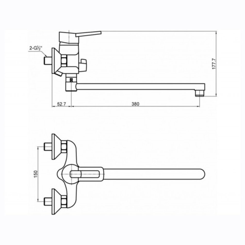 Смеситель Timo Junior Inox 1905Y-CR chrome для ванны и душа, длинный излив
