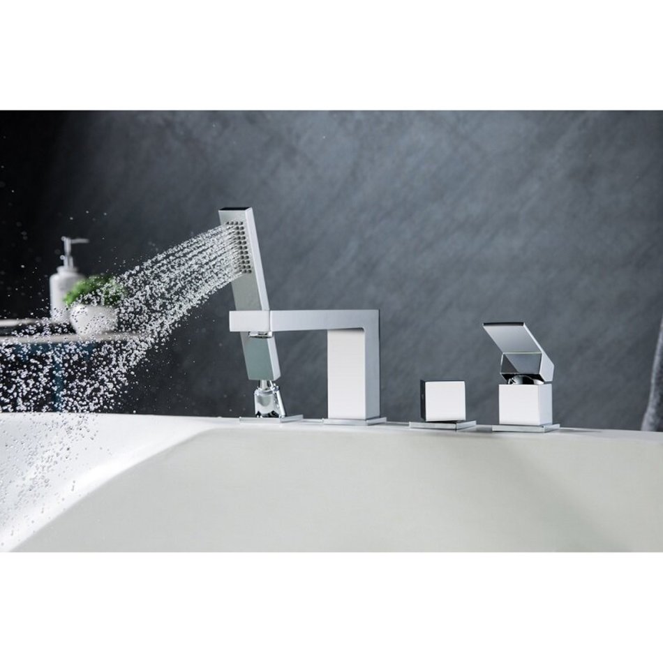Врезной смеситель придаст ванной комнате оригинальности, благодаря тому, что шланг ручной лейки и все соединения скрыты.
