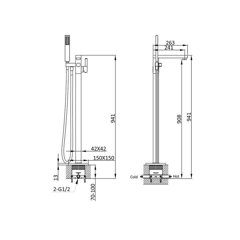 Смеситель Vincea для ванны и душа, напольный, хром, VTF-101CH