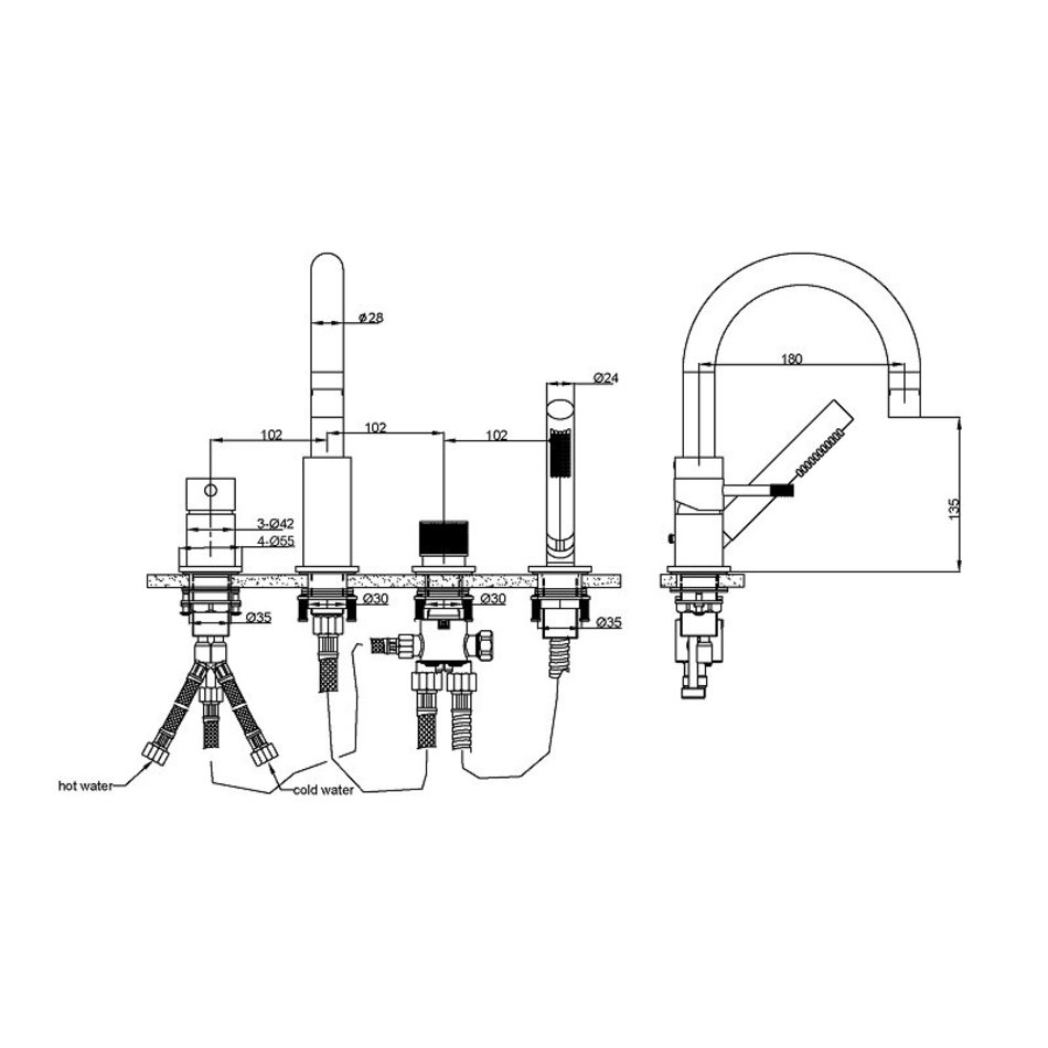 Смеситель врезной Boheme Uno 460-B, на борт ванны, цвет черный
