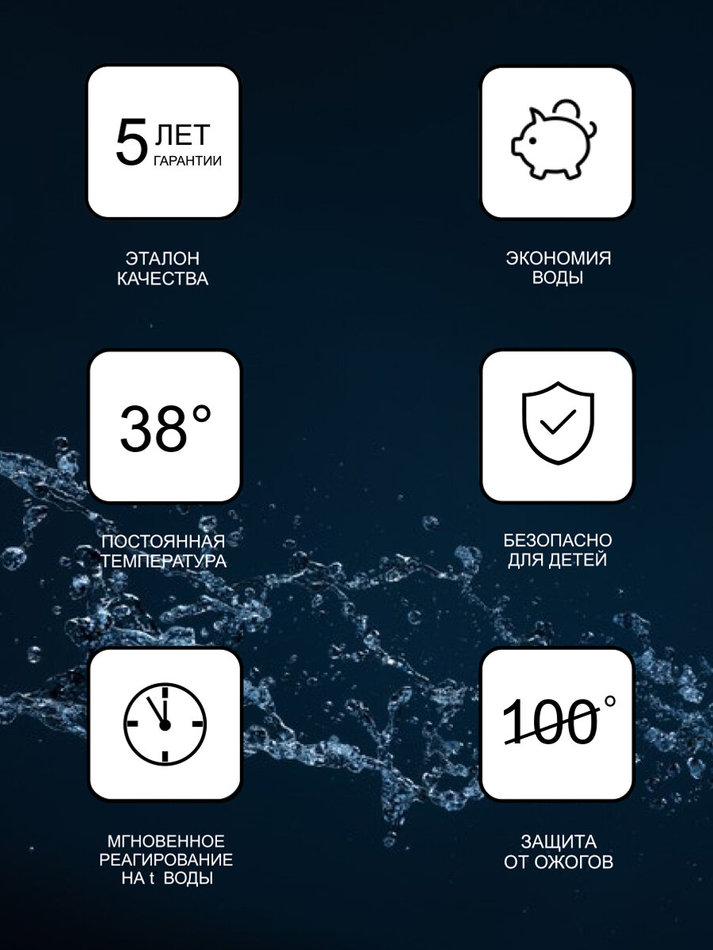 - При прекращении подачи холодной воды немедленно блокируется горячая