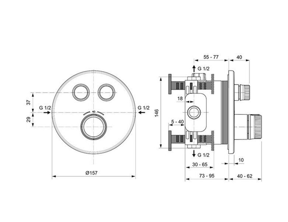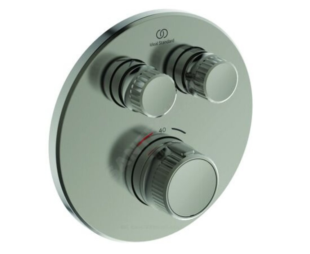 CERATHERM NAVIGO Встраиваемый термостатический смеситель для душа, комплект №2 (функциональный комплект и накладка для настенного монтажа); термостатический картридж FirmaFlow Therm; без душевого гарнитура; 2 рукоятки потока - управление двумя независимыми друг от друга потоками (2-х функциональные металлические рукоятки - включение/выключение нажатием и регулировка потока поворотом); металлическая рукоятка с ограничителем температуры 40°C, с насечкамим для удобного захвата; плоская металлическая накладка. Простота в эксплуатации благодаря эргономичным ручкам и достаточному расстоянию между элементами управления. Для монтажа с комплектом EASY-BOX A1000NU (заказывается дополнительно)