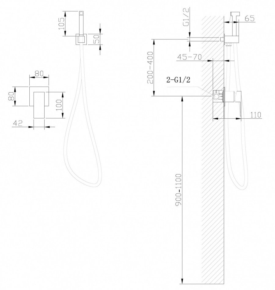 ВНИМАНИЕ! Шланг и лейка не рассчитаны на постоянное запорное давление, после использования необходимо закрыть подачу воды в смесителе.